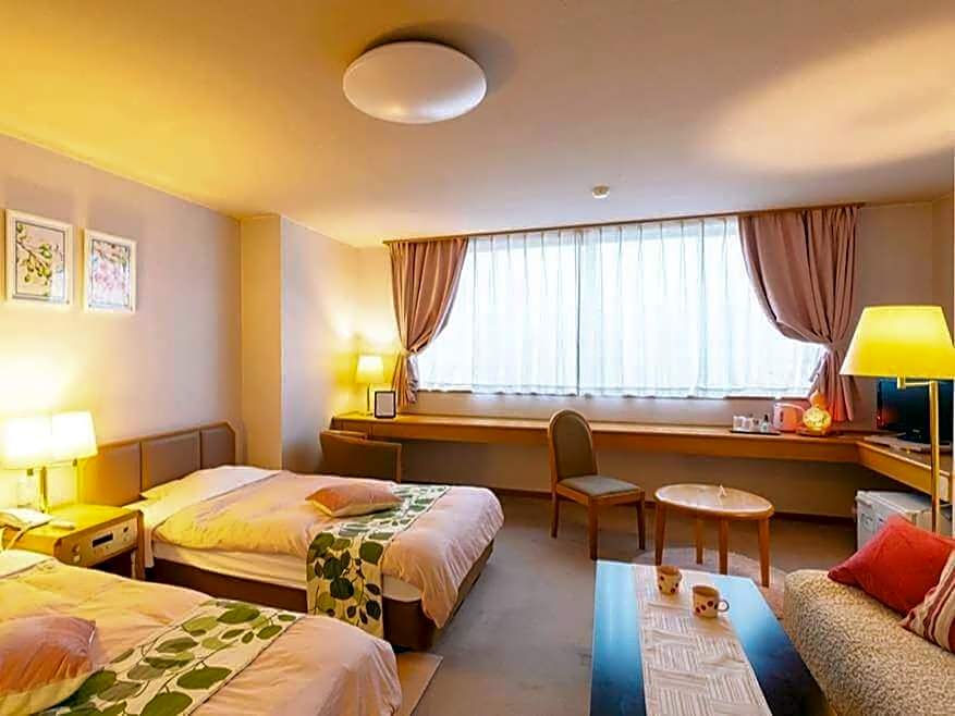 The twin room features air conditioning, a wardrobe, as well as a private bathroom boasting a bath and a shower. The twin room offers an electric kettle, a carpeted floor, yukata, heating and a flat-screen TV. The unit has 2 beds.
